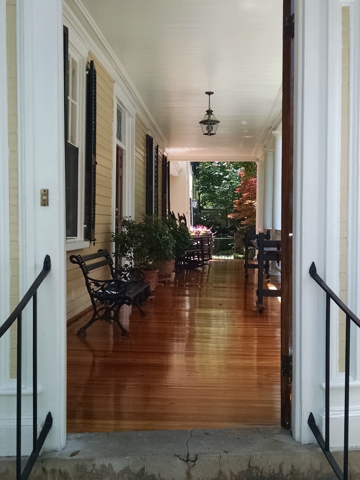 | This row house had a pristine, hidden veranda that was like looking into a peaceful tunnel. |